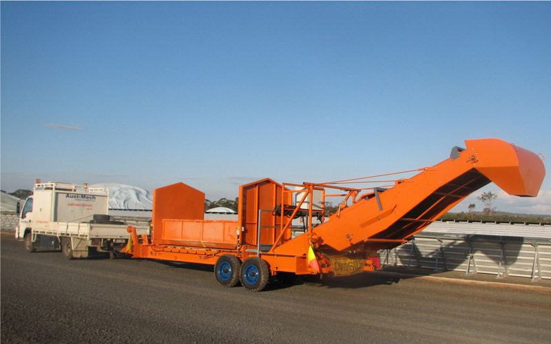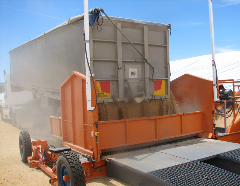 Highly mobile or fixed drive over receival grids designed for high capacity, quick and convenient unloading of trucks including B doubles and road trains. Unique all belt design ensures gentle handling, safe and smooth operation and self cleaning between loads. Available in a range of sizes and configurations to suit your application